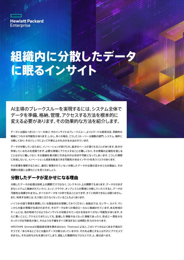 組織内に分散したデータに眠るインサイト 自社環境でサイロ化したデータに眠るインサイトを活用するには たった今、組織にとって最も価値のあるインサイトは、それを必要とするチームやツールから隠されていて、遠く離れた場所に眠っているかもしれません。しかし、インサイトをそこに留めておくべき理由などありません。統合されたAI対応のデータ基盤により、障壁を取り除き、時間のかかるタスクを自動化し、今日の最も大掛かりなプロジェクトの要求を満たすように拡張できます。その結果、データの品質だけでなく意思決定の質も向上し、イノベーションが加速され、業界での競争優位性が高まります。データの可能性を最大限に活用するチャンスは、思っているよりも近くにあります。 6399-JP-What insights are hiding within your company’s siloed data? ファーストネーム苗字Eメール会社名会社の規模選んでください…1 – 2526 – 99100 – 499500 – […]