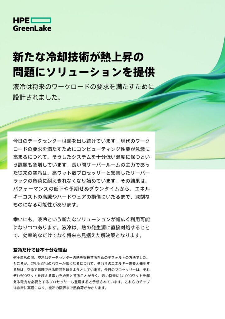 新しい冷却技術が深刻化する熱の問題に対する解決策を提供します 上昇する温度への対応課題を解消する新たな冷却技術。 最新のワークロード ニーズに対応するためにコンピューティング性能が急速に向上すると同時に、これらのシステムの温度を常時適切に冷却するニーズも急拡大しています。空冷は長年、データセンターにおける熱管理の標準的な手法でした。しかし、CPU、GPU性能の向上に伴って発生する熱とエネルギー需要に、空冷では対応しきれなくなっています。液冷は、効率的なだけでなく将来も見据えた、先進的なアプローチです。 6399-JP-新しい冷却技術が深刻化する熱の問題に対する解決策を提供します ファーストネーム苗字Eメール会社名会社の規模選んでください…1 – 2526 – 99100 – 499500 – 9991000 – 49995000 – 999910000+住所郵便番号電話役職業界選んでください…選んでください…航空宇宙農業衣服自動車銀行業バイオテクノロジー化学薬品コミュニケーション工事コンサルティング教育エレクトロニクスエネルギーエンジニアリングエンターテインメント環境ファイナンス食べ物と食べ物飲料政府健康管理ホスピタリティ保険機械製造業メディアマイニング非営利他の医薬品レクリエーション小売りサービス配送テクノロジー電気通信交通機関公共事業市国選んでください…アフガニスタンアルバニアアルジェリアアメリカ領サモアアンドラアンゴラアンギラ南極大陸アンティグアバーブーダアルゼンチンアルメニアアルバオーストラリアオーストリアアゼルバイジャンバハマバーレーンバングラデシュバルバドスベラルーシベルギーベリーズベナンバミューダブータンボリビアボネール島、シント・ユースタティウス島、サバ島ボスニア・ヘルツェゴビナボツワナブーベ島ブラジル英領インド洋領土ブルネイ ダルサラームブルガリアブルキナファソブルンジカンボジアカメルーンカナダカーボベルデケイマン諸島中央アフリカ共和国チャドチリ中国クリスマス島ココス諸島コロンビアコモロコンゴ民主共和国コンゴ共和国クック諸島コスタリカクロアチアキューバキュラソーキプロスチェコ共和国コートジボワールデンマークジブチドミニカドミニカ共和国エクアドルエジプトエルサルバドル赤道ギニアエリトリアエストニアエスワティニ […]