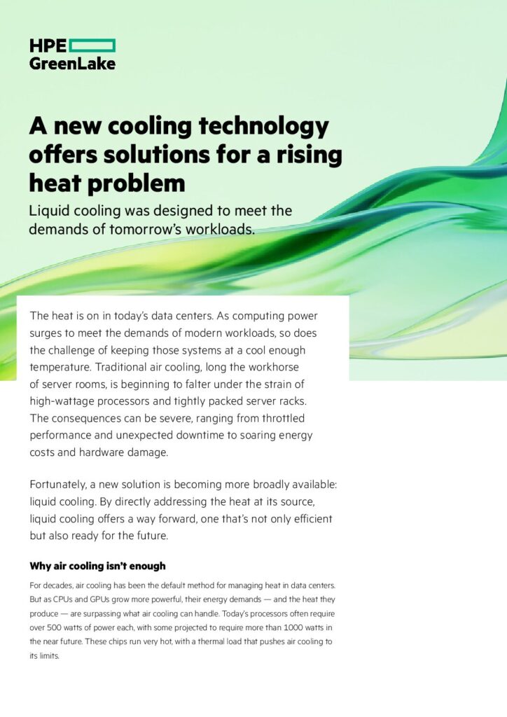 A new cooling solution for a rising heat problem: Liquid cooling meets the demands of tomorrow’s workloads As computing power