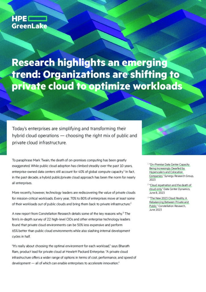 Research highlights an emerging trend: Organizations are shifting to private cloud to optimize workloads Public-cloud-only is no longer the default