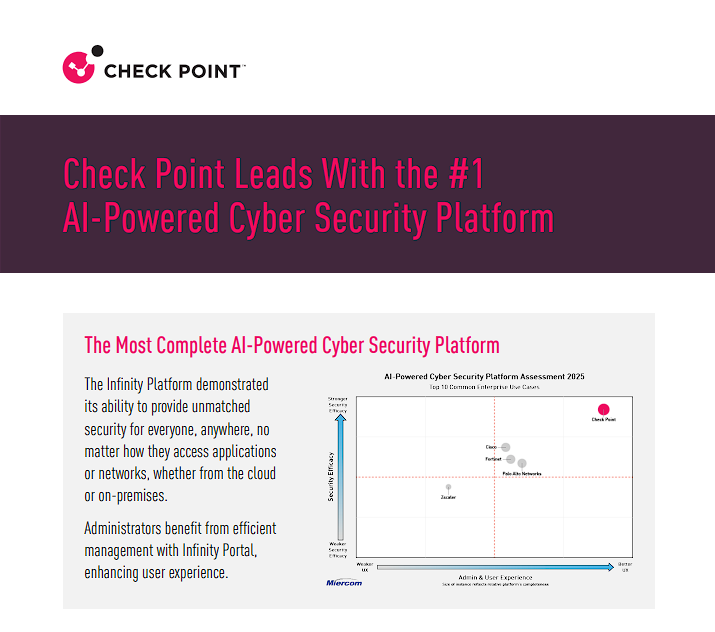 Independent testing by Miercom confirms Check Point Infinity as the industry’s most complete AI-powered cyber security platform — outperforming competitors by up to 10× and delivering up to 25% better threat-block rates.