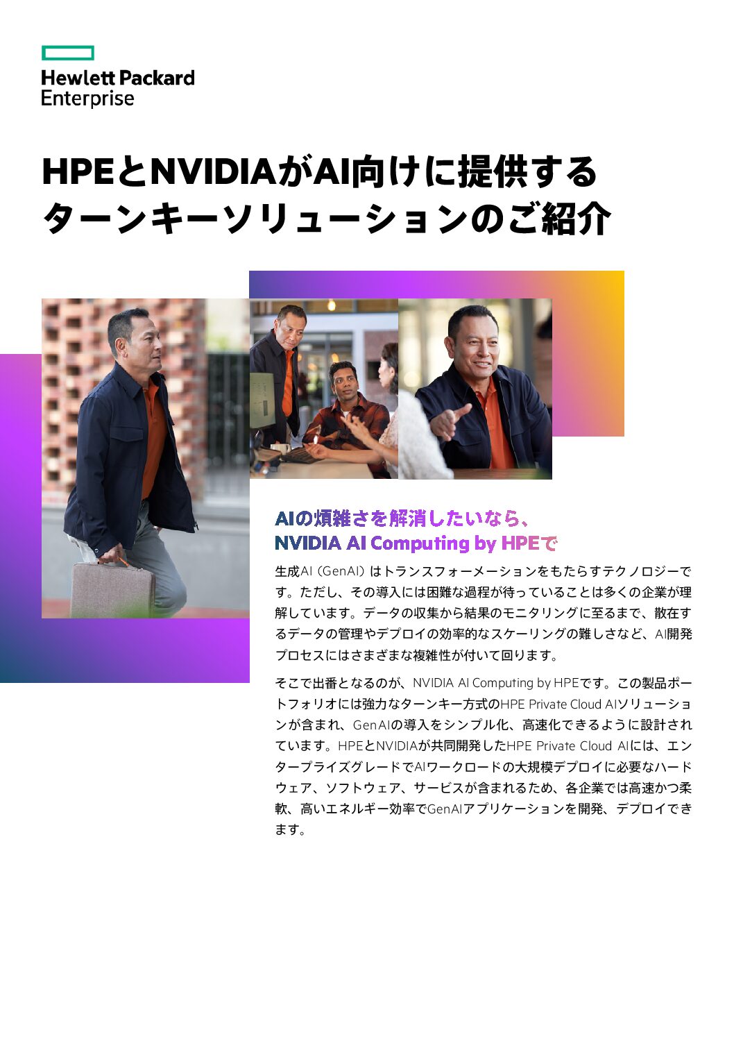 従来のAI開発サイクルとHPEのアプローチを比較した詳細をぜひご覧ください。NVIDIA AI Computing by HPEの導入で、ターンキー型ソリューションを活用してAI開発のあらゆる段階を簡素化できるようになります。