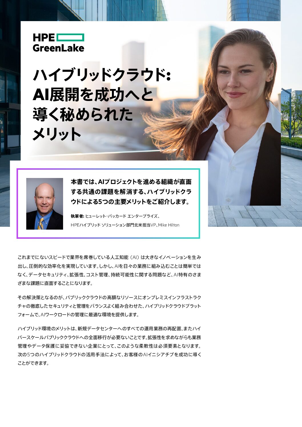 イノベーションと優れた効率性を促進する人工知能 (AI) は、多くの業界に変革をもたらしています。しかし、通常のビジネス運用にAIを導入するには、データセキュリティ、拡張性、コスト管理、サステナビリティといったさまざまな課題への対処が求められます。この解決策となるのが、パブリッククラウドの拡張性に優れたリソースにオンプレミス インフラストラクチャの強固なセキュリティ、制御性を組み合わせたハイブリッドクラウド プラットフォームです。このアプローチによって、ハイパースケールパブリッククラウドに完全移行せずに、AIワークロードを効率的に管理できるようになります。ハイブリッドクラウド プラットフォームでは、シームレスなデータ統合、強固なセキュリティ、またさまざまなデータ規制への準拠が可能になります。さらに、必要に応じてAIワークロードを自在に拡縮できる優れた柔軟性を備えており、コスト、環境への負荷も削減できます。ハイブリッドクラウドモデルの導入でAIイニシアチブを最適化し、カーボンフットプリントを最低限に抑えながら、優れたデータ可用性、セキュリティ、コスト効率を確保できるようになります。この記事では、AIによるメリットを最大限に引き出すためのハイブリッドクラウド プラットフォームの活用方法5つを解説しています。