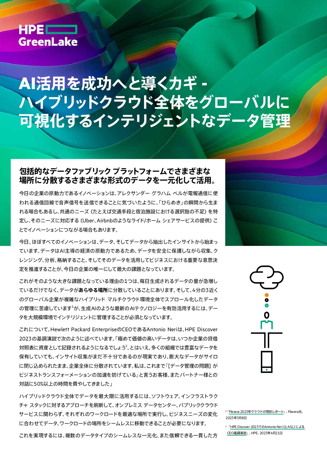 今日、ほぼすべてのイノベーションは、データ、そしてデータから抽出したインサイトから始まっています。データはAI主導の経済の原動力であるため、データを安全に保護しながら収集、クレンジング、分析、格納すること、そしてそのデータを活用してビジネスにおける重要な意思決定を推進することが、今日の企業の唯一にして最大の課題となっています。最新のデータファブリックが支える統合分析プラットフォームによって、この課題に対処する方法をご覧ください。 重要なポイント