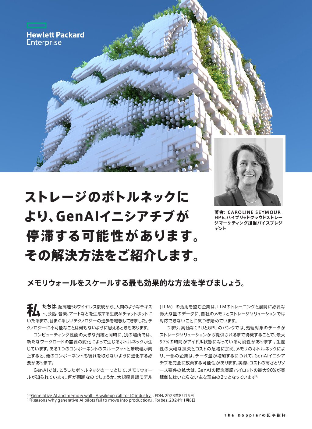 コンピューティング性能が大きく飛躍するたび、新たなワークロードの需要の変化により、ボトルネックが別の場所で伴っています。GenAIをめぐっては、こうしたボトルネックの一つとして、メモリウォールが知られています。大規模言語モデル (LLM) の活用を望む企業は、LLMのトレーニングと展開に必要な膨大な量のデータに、自社のメモリとストレージソリューションでは対応できないことに気づき始めています。しかし、メモリウォールのスケールに役立つ戦略を実行することは可能です。