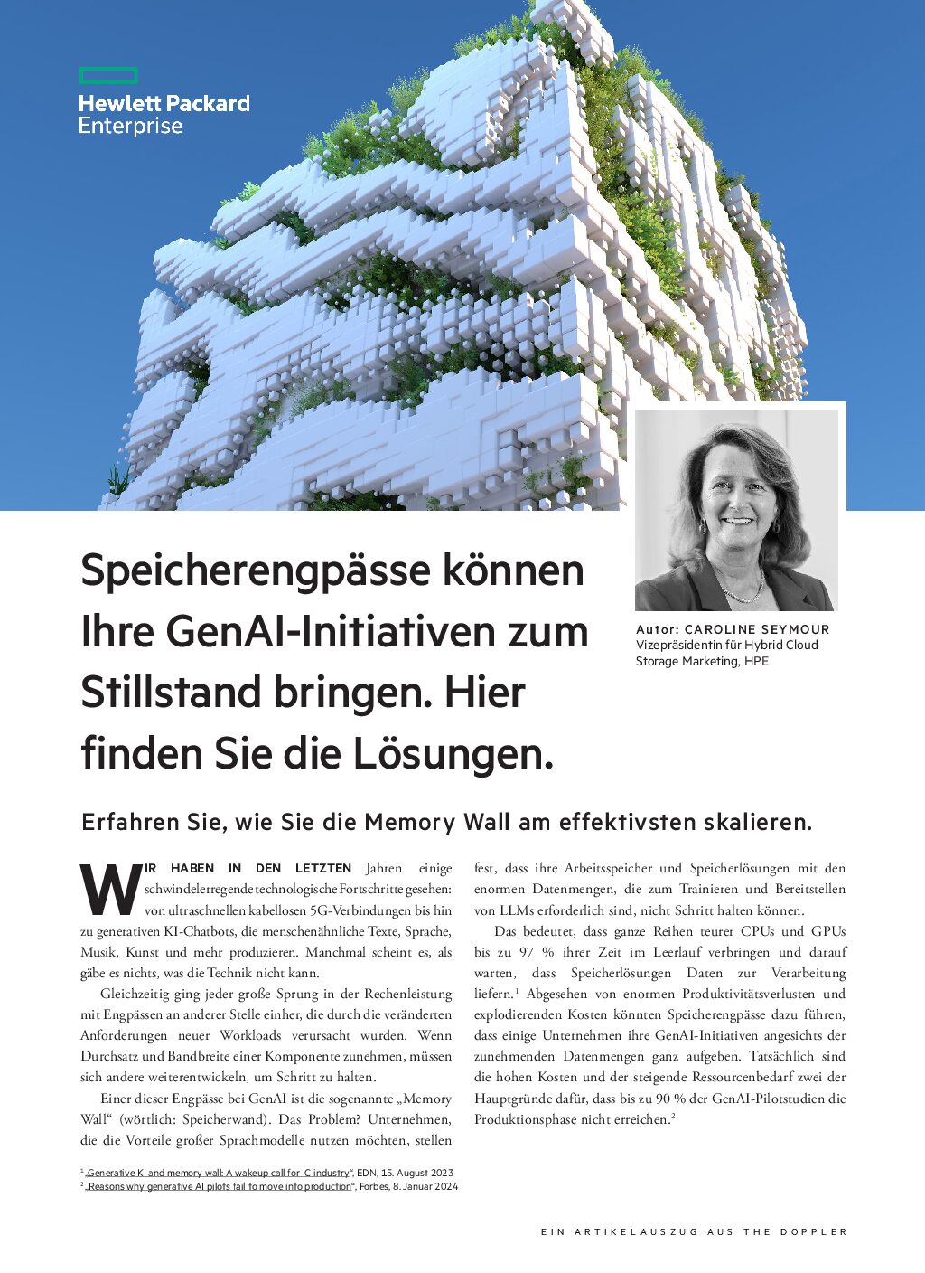 Jeder große Sprung in der Rechenleistung ist mit Engpässen an anderer Stelle einhergegangen, die durch die veränderten Anforderungen neuer Workloads verursacht wurden. Einer dieser Engpässe bei GenAI ist die sogenannte „Memory Wall“ (wörtlich: Speicherwand). Unternehmen, die die Vorteile von Large Language Models nutzen möchten, stellen fest, dass ihre Arbeitsspeicher und Datenspeicherlösungen mit den enormen Datenmengen, die zum Trainieren und Bereitstellen von LLMs erforderlich sind, nicht Schritt halten können. Es gibt aber Strategien, durch deren Umsetzung Sie die Speicherwand überwinden können.