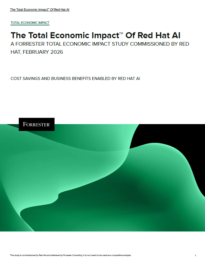 The Total Economic Impact™ Of Red Hat AI, by Forrester Consulting, evaluates the benefits of Red Hat® AI, a complete solution for on-premise AI deployment. The solution includes Red Hat AI Enterprise, Red Hat AI Inference Server, Red Hat OpenShift® AI, and Red Hat Enterprise Linux® AI. The purpose of this study is to provide organizations a framework to evaluate the potential financial impact of Red Hat AI on their IT landscapes.