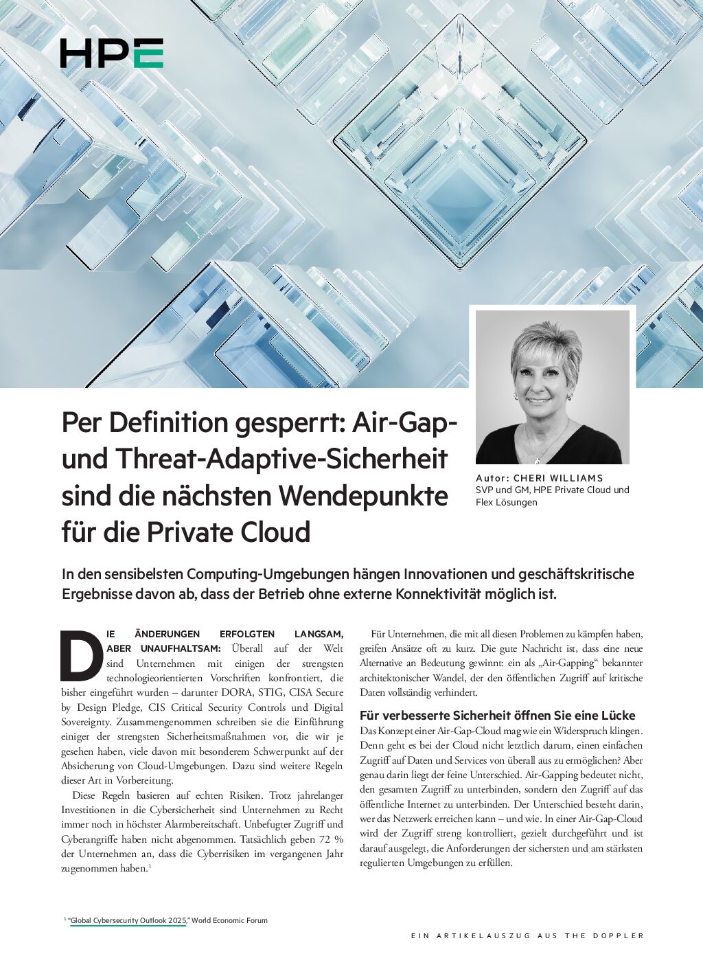 Umfangreiche neue Regulierungen, wie. z. B. DORA, STIG und CIS, schreiben vor, dass in Cloud-Umgebungen bessere Sicherungsmaßnahmen vorgesehen werden müssen. Gleichzeitig stehen Unternehmen immer häufiger im Fadenkreuz von Cyberangriffen, die immer raffinierter werden. Eine Lösung für beide Aufgaben ist die Nutzung einer Air Gap Private Cloud, die dafür sorgt, dass vertrauliche Daten nicht in externe Systeme oder ins öffentliche Internet gelangen. Dadurch wird das Risiko eines unbefugten Zugriffs deutlich reduziert. In der Story erkunden wir, warum und wo Air-Gap-Systeme gebraucht werden, wie sie funktionieren und wie sie die Herausforderungen bei ihrer Bereitstellung und Verwaltung bewältigen. Dabei heben wir die neuen Lösungen von HPE hervor.
